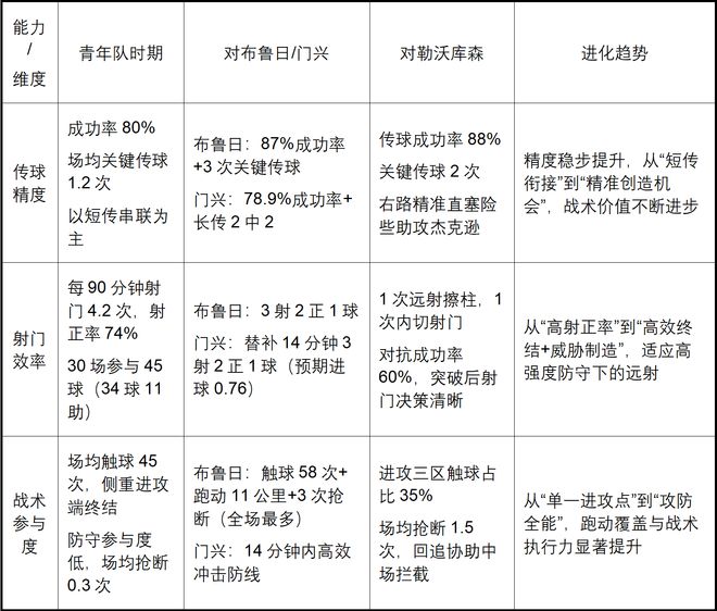 尽管年纪尚轻,卡尔却展现出超越年龄的成熟与冷静。面对接连打破纪录后的赞誉,他没有迷失方向,而是始终以“持续进步”为目标;在孔帕尼的点拨下,他深知“在拜仁这样的俱乐部,高期待是常态,秘诀在于保持冷静、坚持做自己该做的事”。这种沉稳的心态,让他在高强度的比赛中能够迅速适应节奏,抓住有限的登场机会创造价值。对阵勒沃库森时,他在中场与基米希、莱默尔的配合愈发默契,传球成功率保持在85%以上,完美融入拜仁4-2-3-1的战术体系。